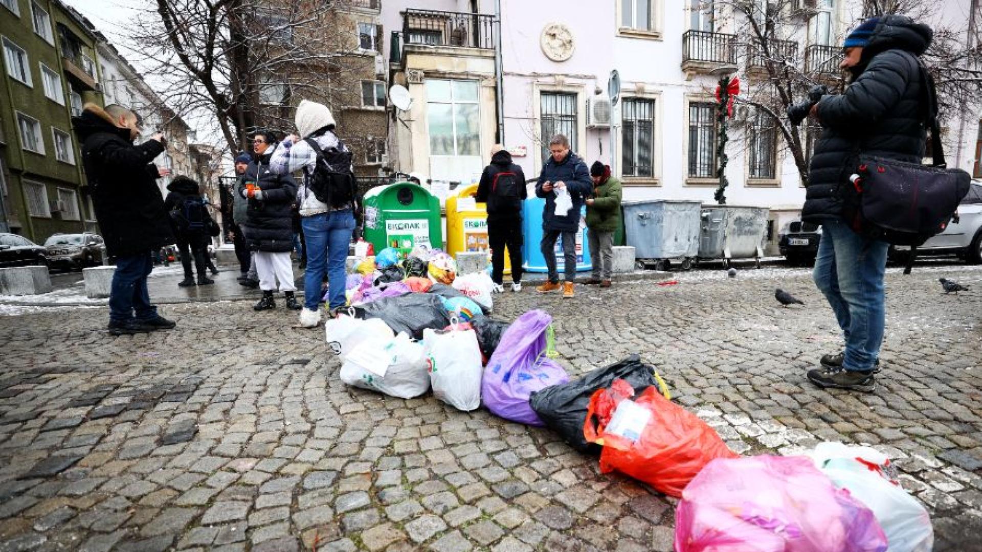По-рано участниците поставиха чували с отпадъци пред сградата на общината, а накрая на демонстрацията те бяха събрани и извозени до близките контейнери.