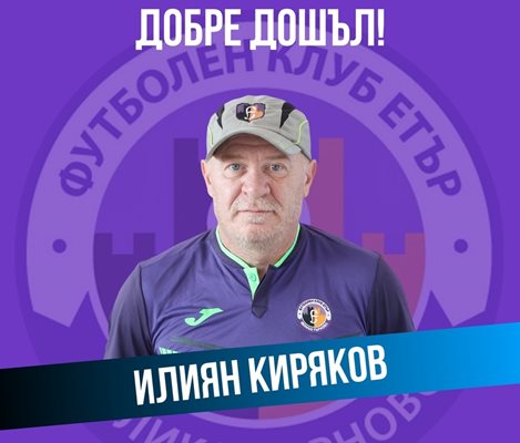 Като треньор Илиян Киряков бе част от „Етър“, а сега отново ще споделя своя огромен опит за бъдещите успехи на „виолетовите“, добавиха от клуба.