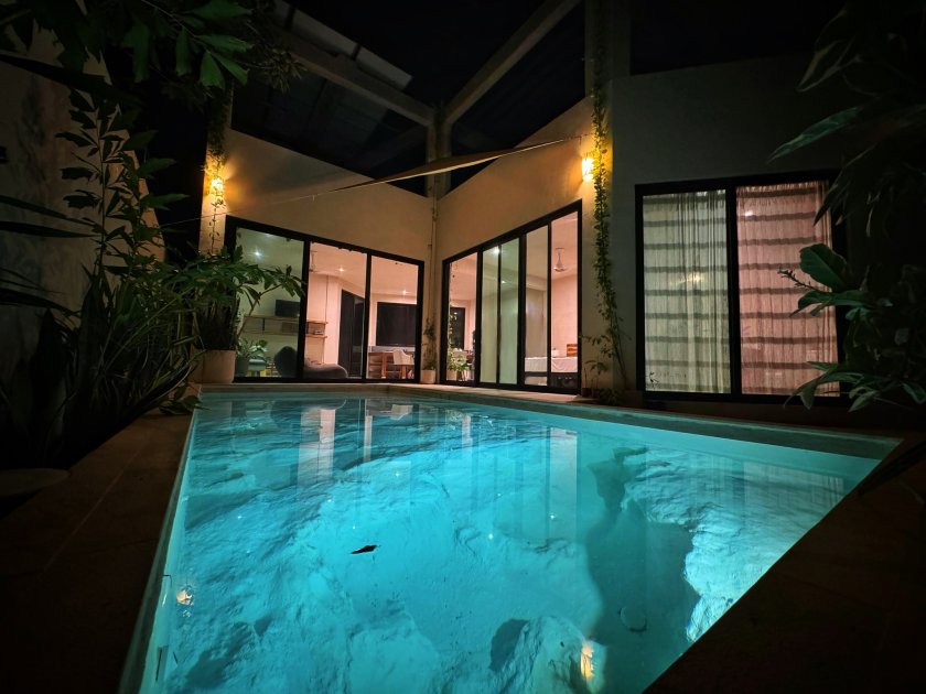 Към имотите има и площи от 500 м², озеленени с банани, манго, авокадо и други. Строежът е бил осъществен с натурални материали, а външните басейни, наречени „лунни“, са проектирани да приличат на естествени сеноти.
