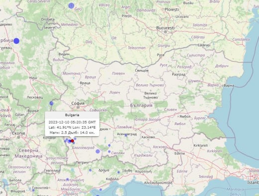 С днешното земетресение общо 8 са регистрираните в Симитлийско в периода от 7 до 10 декември. Земетресение с магнитуд 2.5 по Рихтер беше регистрирано тази сутрин в района на Симитли, според информацията на Националния институт по геофизика, геодезия и география към Българската академия на науките.
